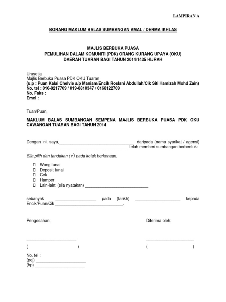 Surat Maklum Balas Sumbangan Pdf